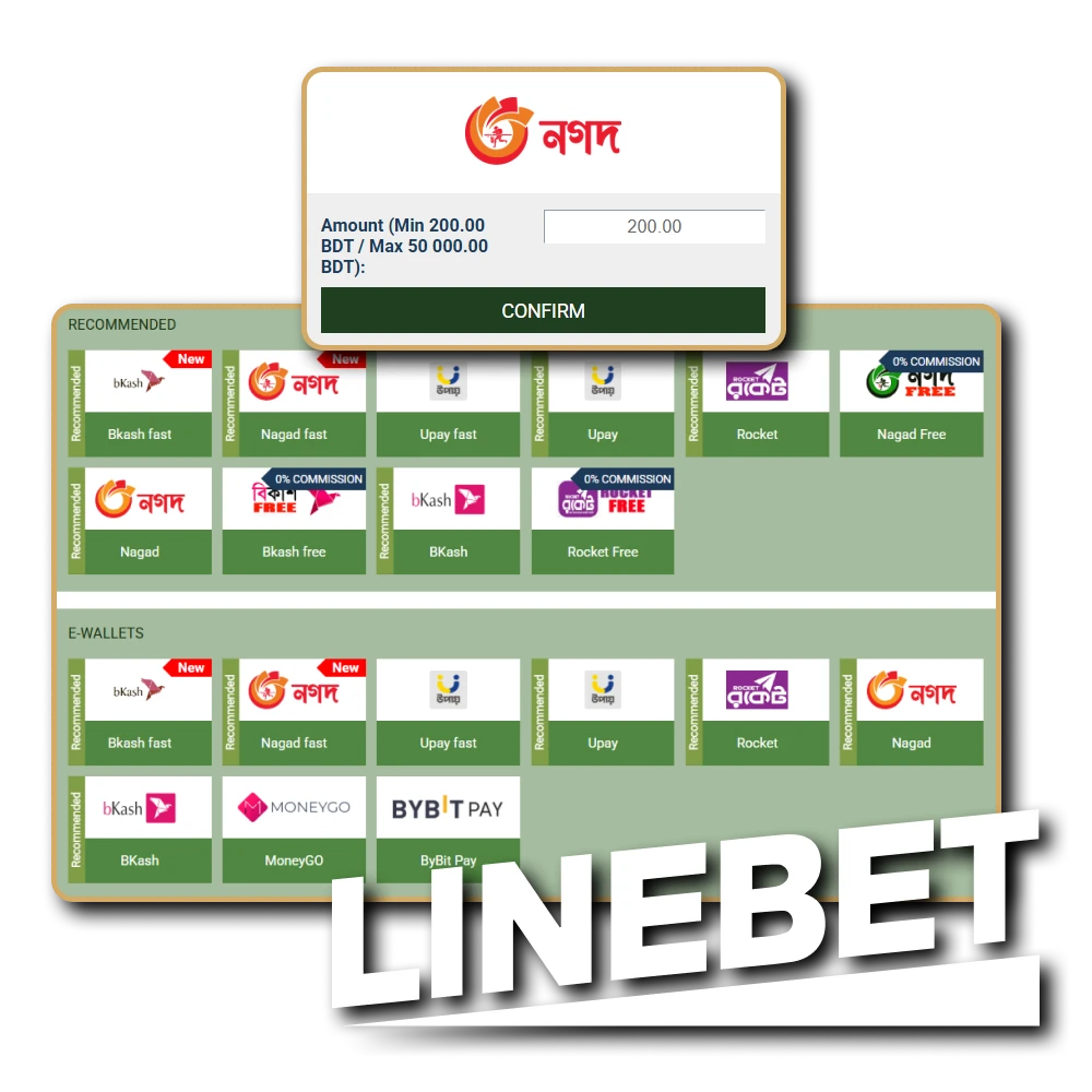 All Bangladeshi fans of betting and gambling will be able to use the best deposit methods at Linebet. We made sure that there are many local options for you to pick from like e-wallets, crypto, bank transfers and more. Not only that, but all the payment methods are also not taking any commission for your payments while crediting money instantly.